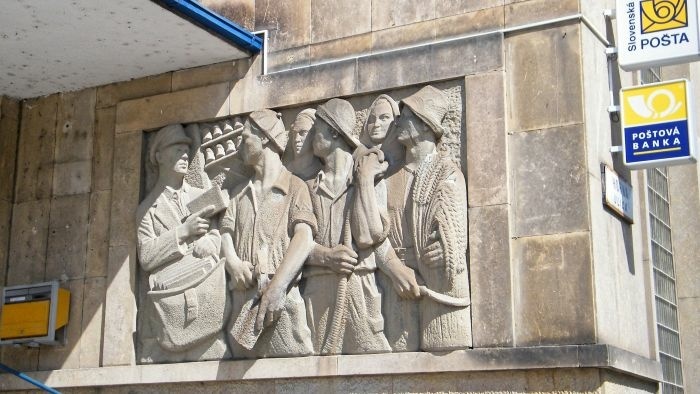 - Magnifique bas relief à Banská Bystrica à la gloire d'un facteur (nous étions tous les deux postiers, aussi cette évocation ne pouvait nous laisser indifférents).